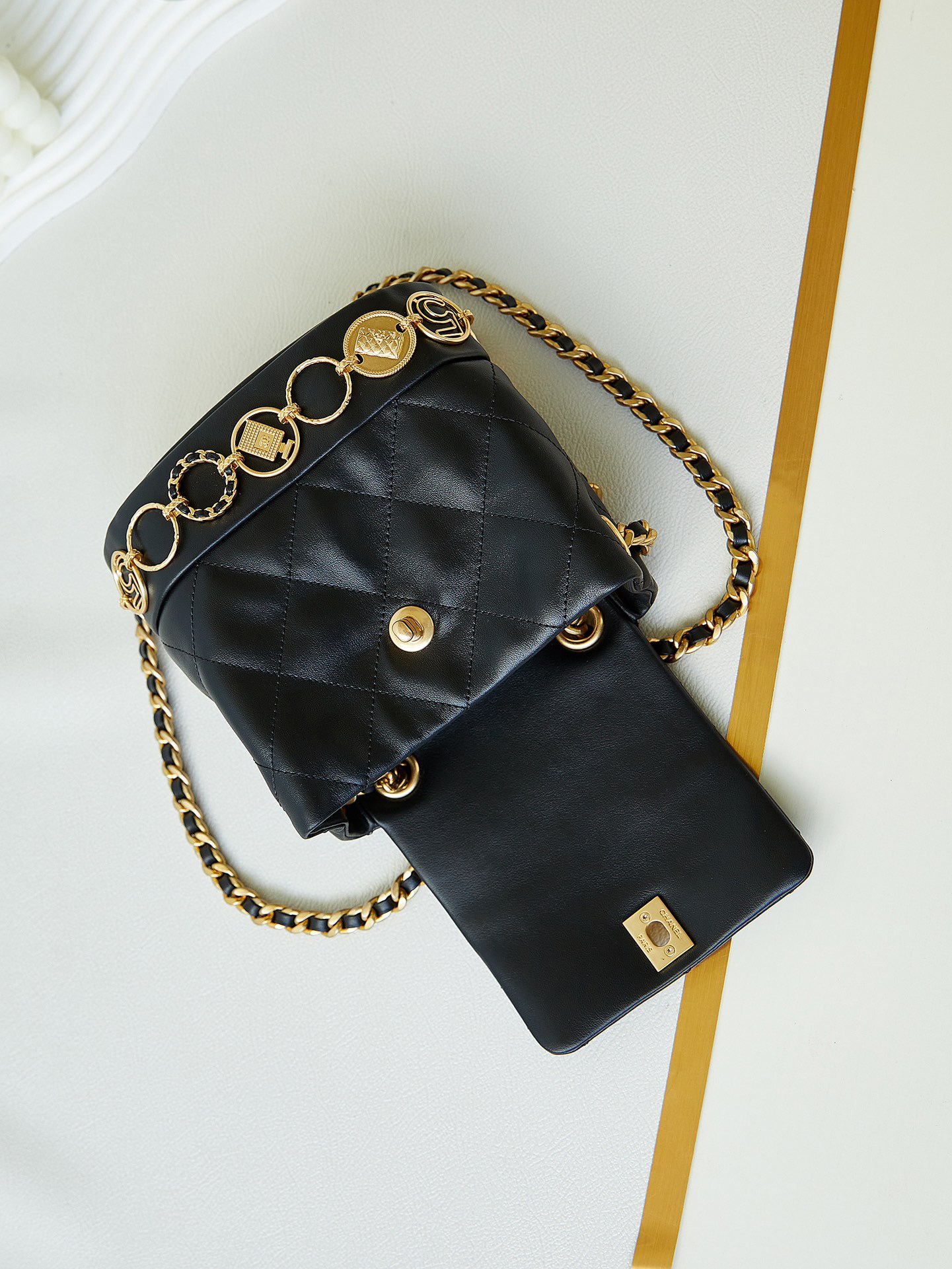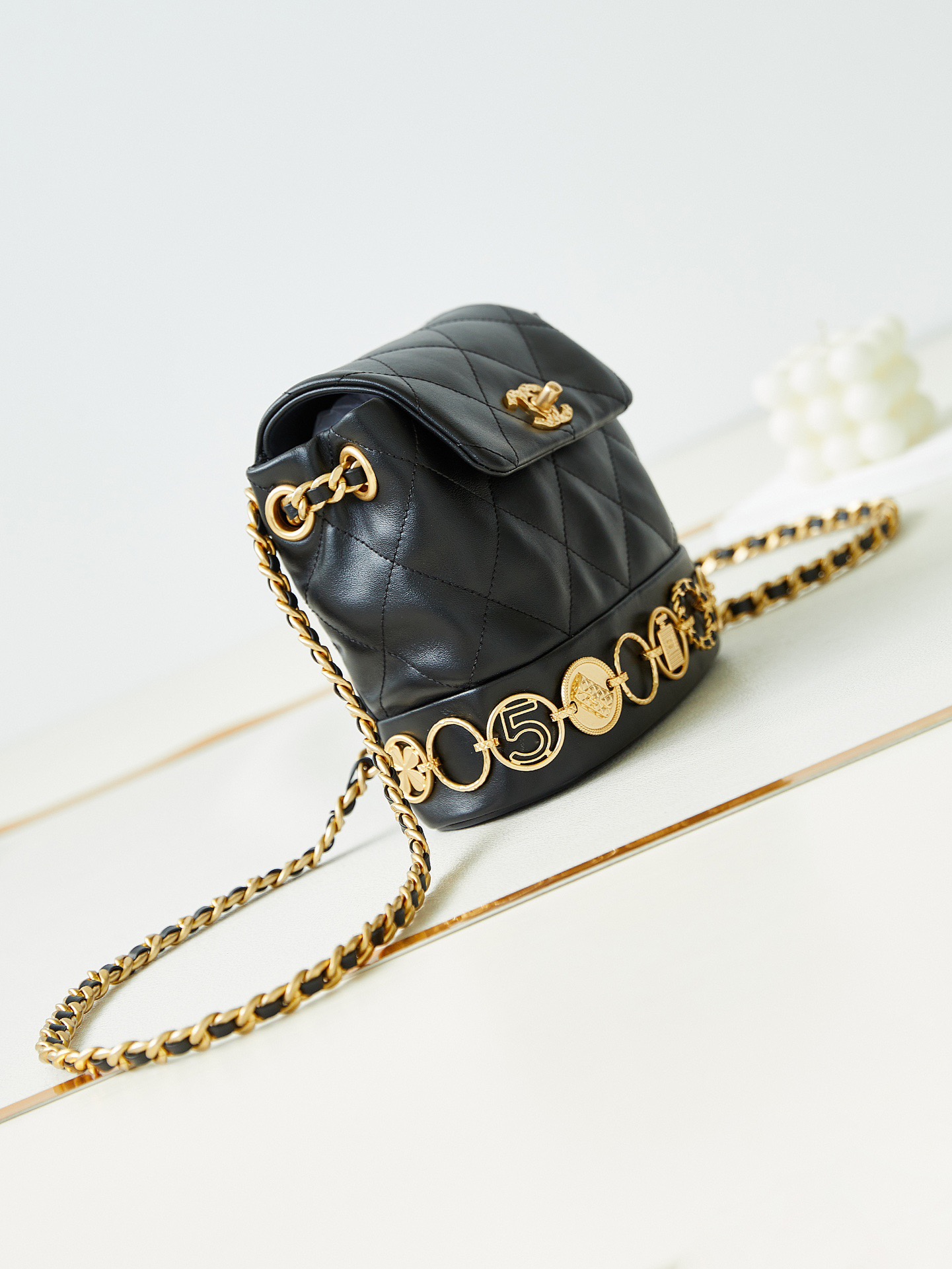 New Chanel 23b gold coin backpack Chanel backpack is the most shiny backpack in the backpack series. I really think it is suitable for sisters in the sports department 🖤🥇 The gold coins are so beautiful, don't you take them out to bask in the sun? This one belongs to a small backpack, but it has a large capacity and a sheepskin texture, making it very comfortable to use. This circle of gold coins gives me a kind of ancient Egyptian high priest, with a wild beauty 🐯💜 Without gold coins, it looks a bit monotonous. Model number as4275,