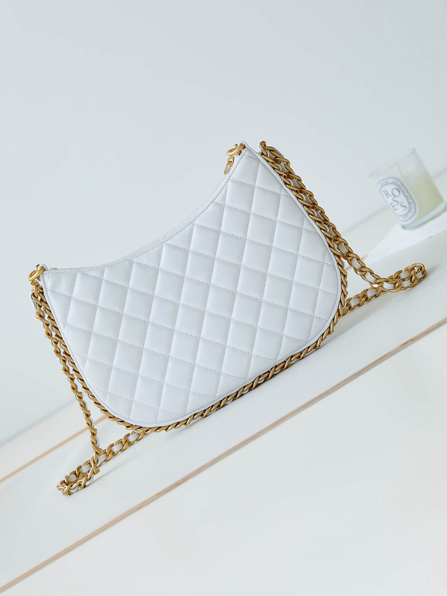 New design hobo~ Bag edge inset with exquisite woven chain unique process shows that fashion makes girls confident bloom in different occasions, gold hardware embellishment adds a gorgeous sense to the bag, Exudes a noble temperament small size of the single chain design, simple and yet exquisite ~ large size of the double chain design is more fashion sense they are exquisite every detail ~ also too charming! This quality, it's amazing size:18×29×2cm