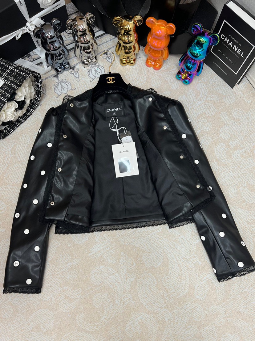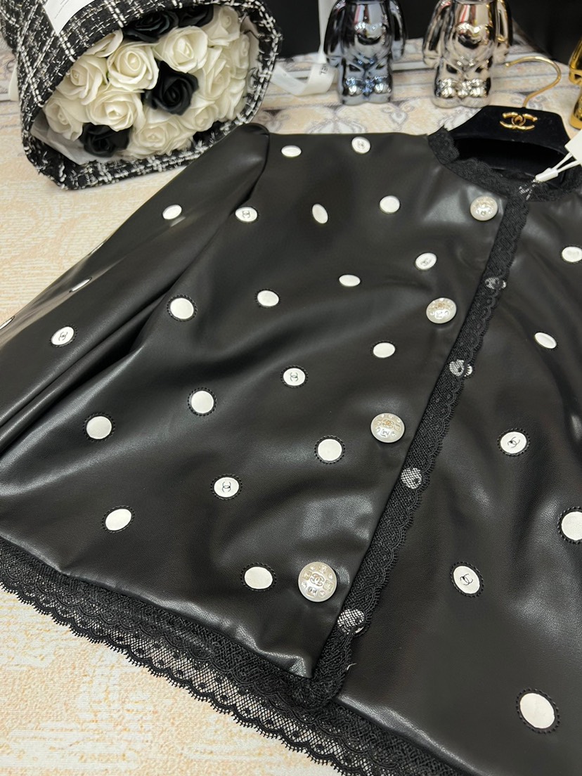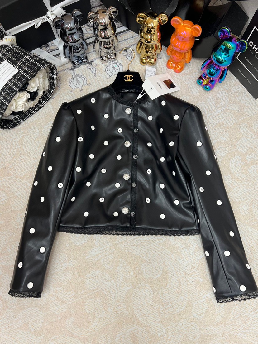 New Chanel 2023 Spring/Summer New Collection Chanel Classic Black Polka Dot Leather Short Coat