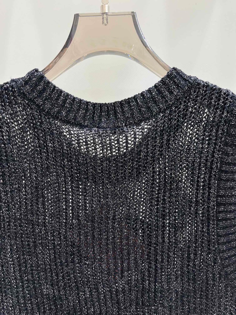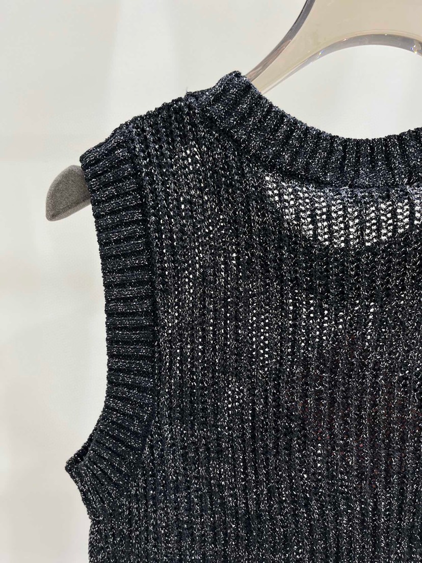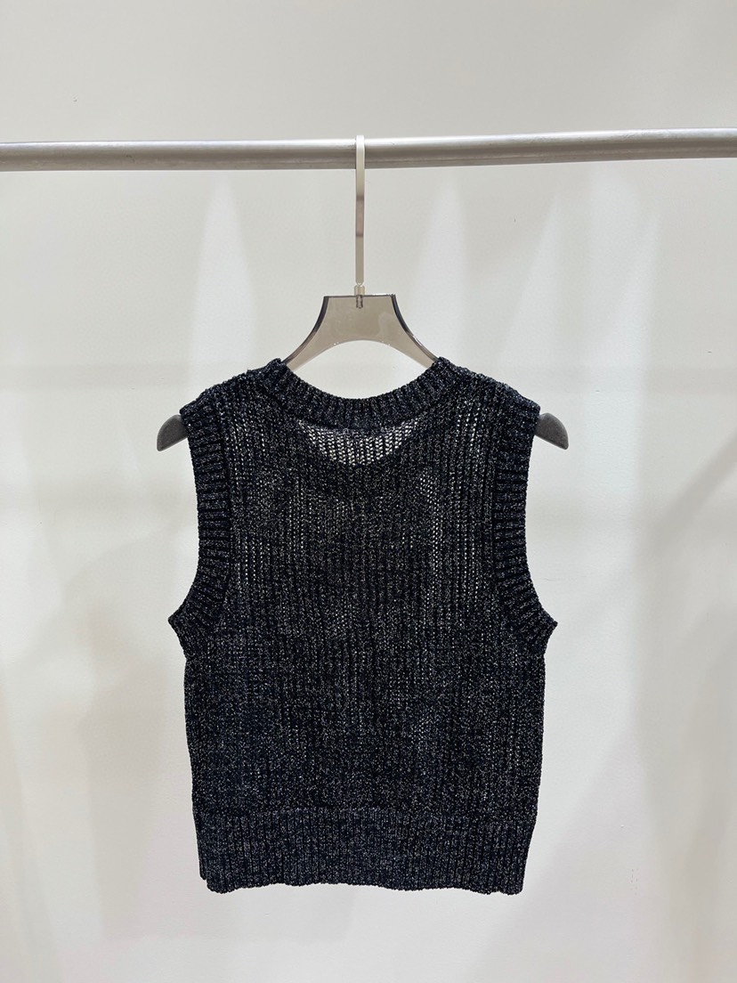DetailExclusive debut Miu Miao 23 Summer New Pink Rhinestone Letter Hollow Knitted Tank Top in One Color Three Sizes