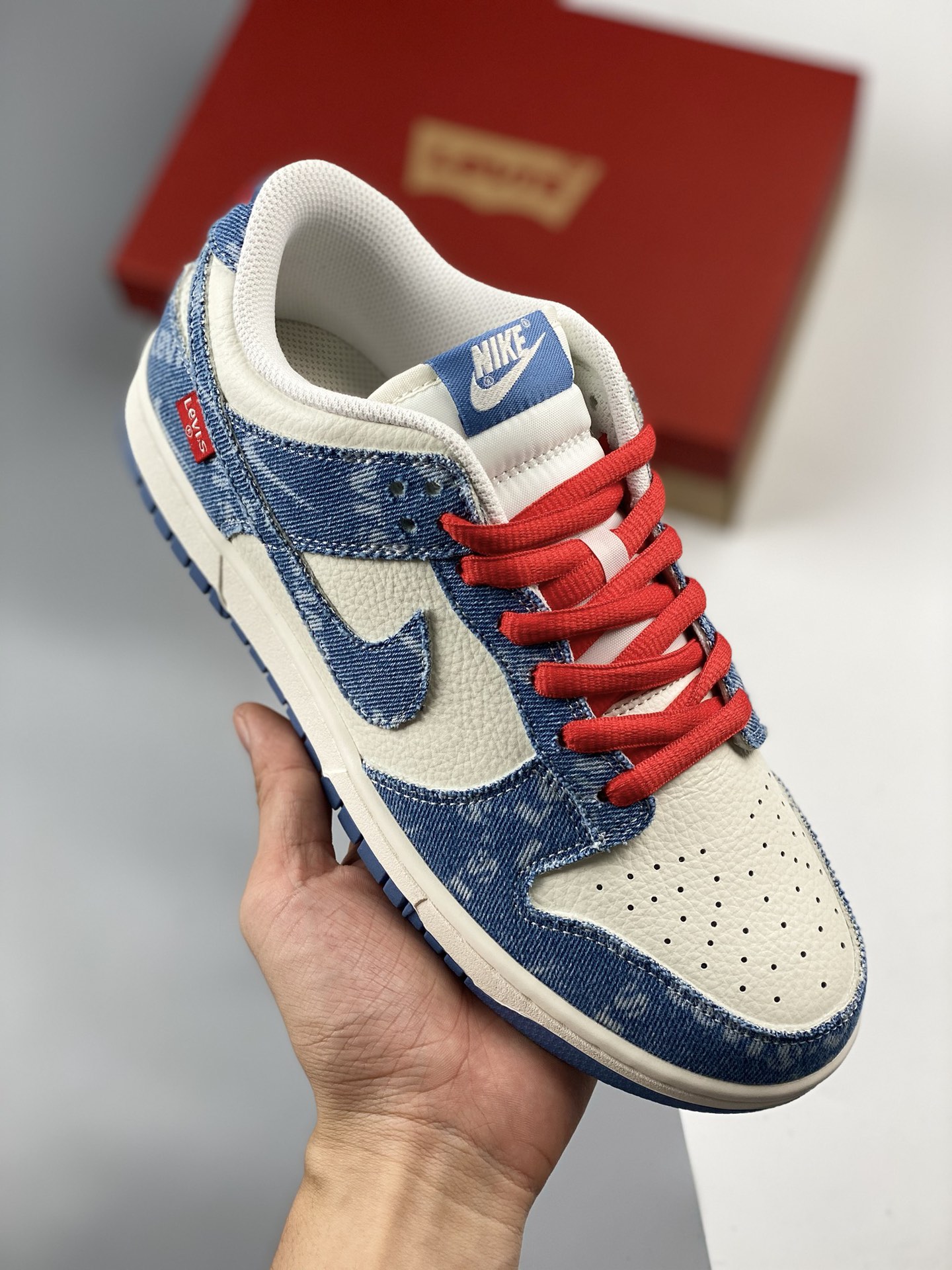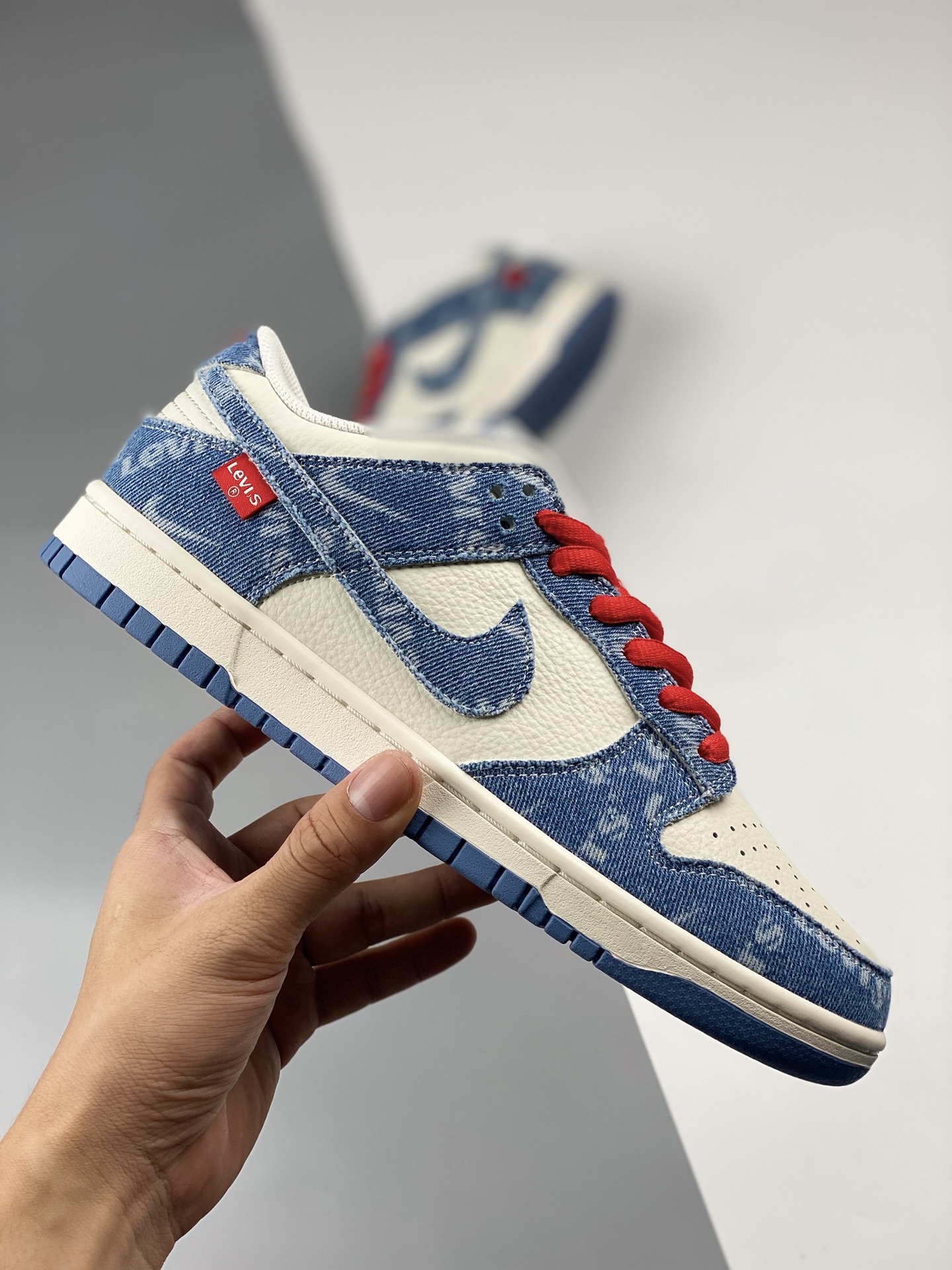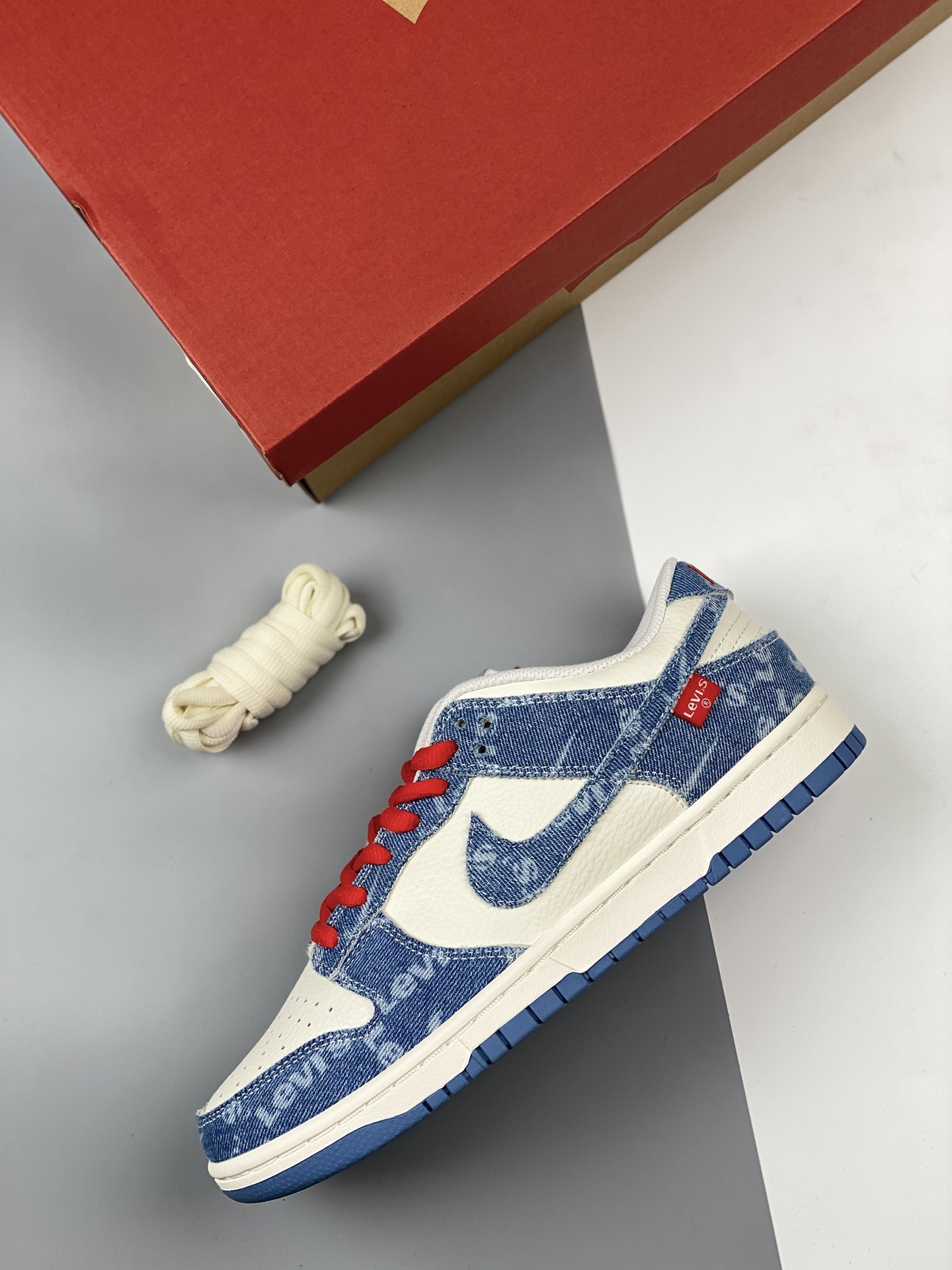 DetailNike dunk low levi's light blue Denim Levi's co named this shoe body is covered with a large area of canvas material, with white as the background color, matching the denim blue frame and swoosh design, the overall appearance is simple and versatile. In addition, the stitching on the shoe body is also outlined with white stitching to enhance the overall sense of layering. The previous word 'nike' has also been removed from the heel. The sole is designed with a white midsole and a blue rubber outsole, which complements the color scheme of the shoe. Article number: le0021-002
