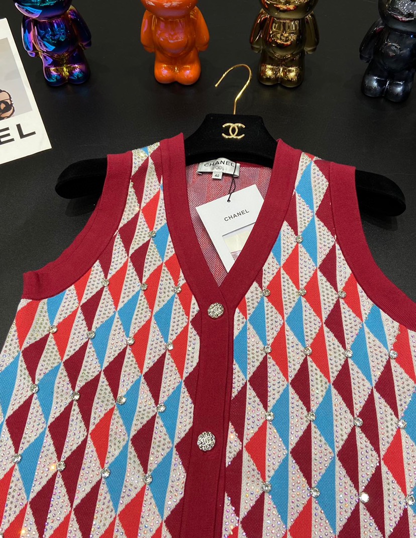 Chane * 23 New Vest 😍 Contrast Lingge Heavy Industry Hot Diamond Design Retro Advanced 🔥 Size SML available from stock