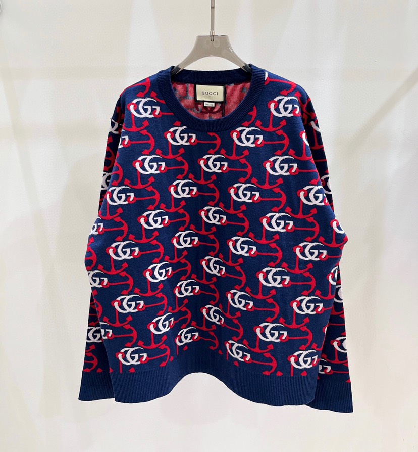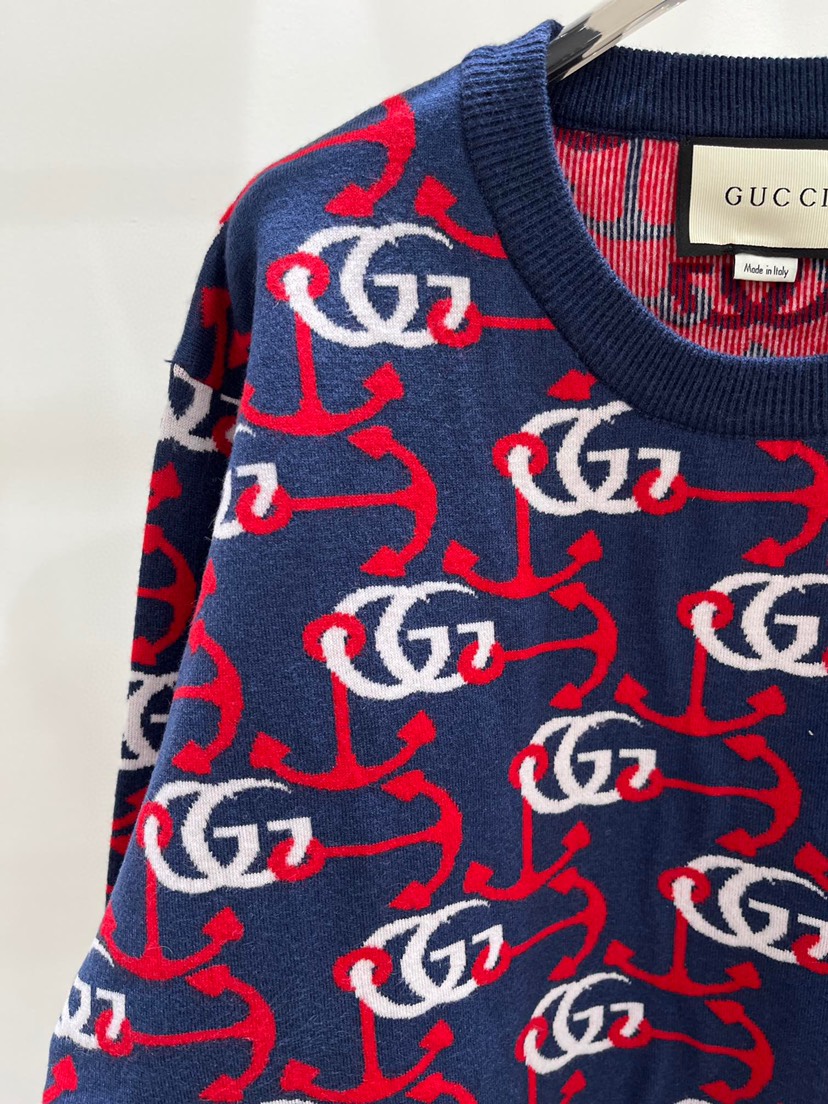 Home / Women's Clothing / New Gucci Round Neck Contrast Double G Jacquard Knit Long Sleeve