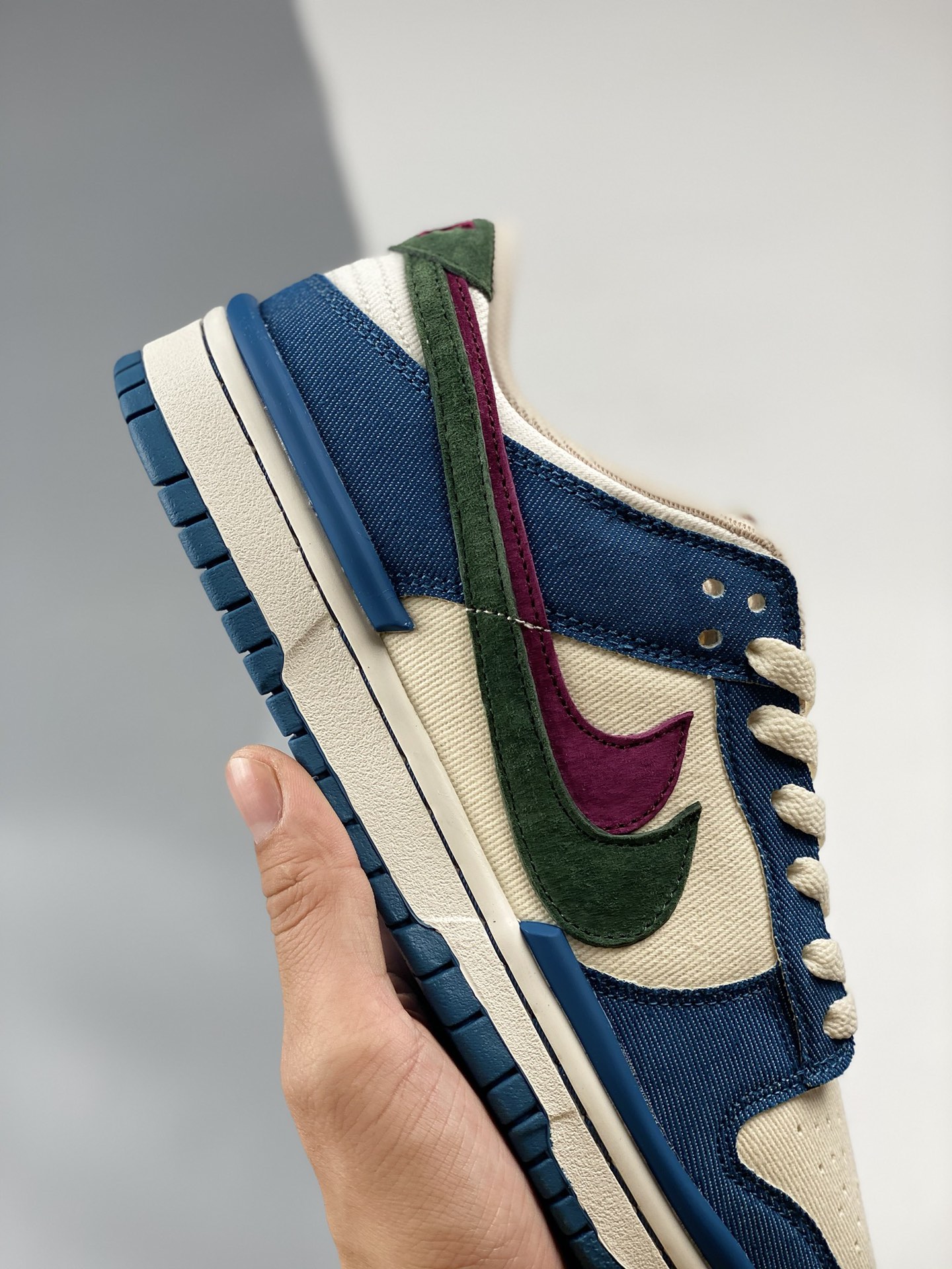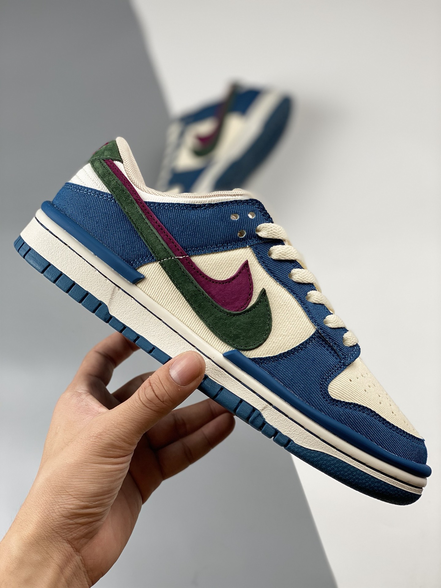New Nike dunk low red and green Denim customized double hook flat shoes