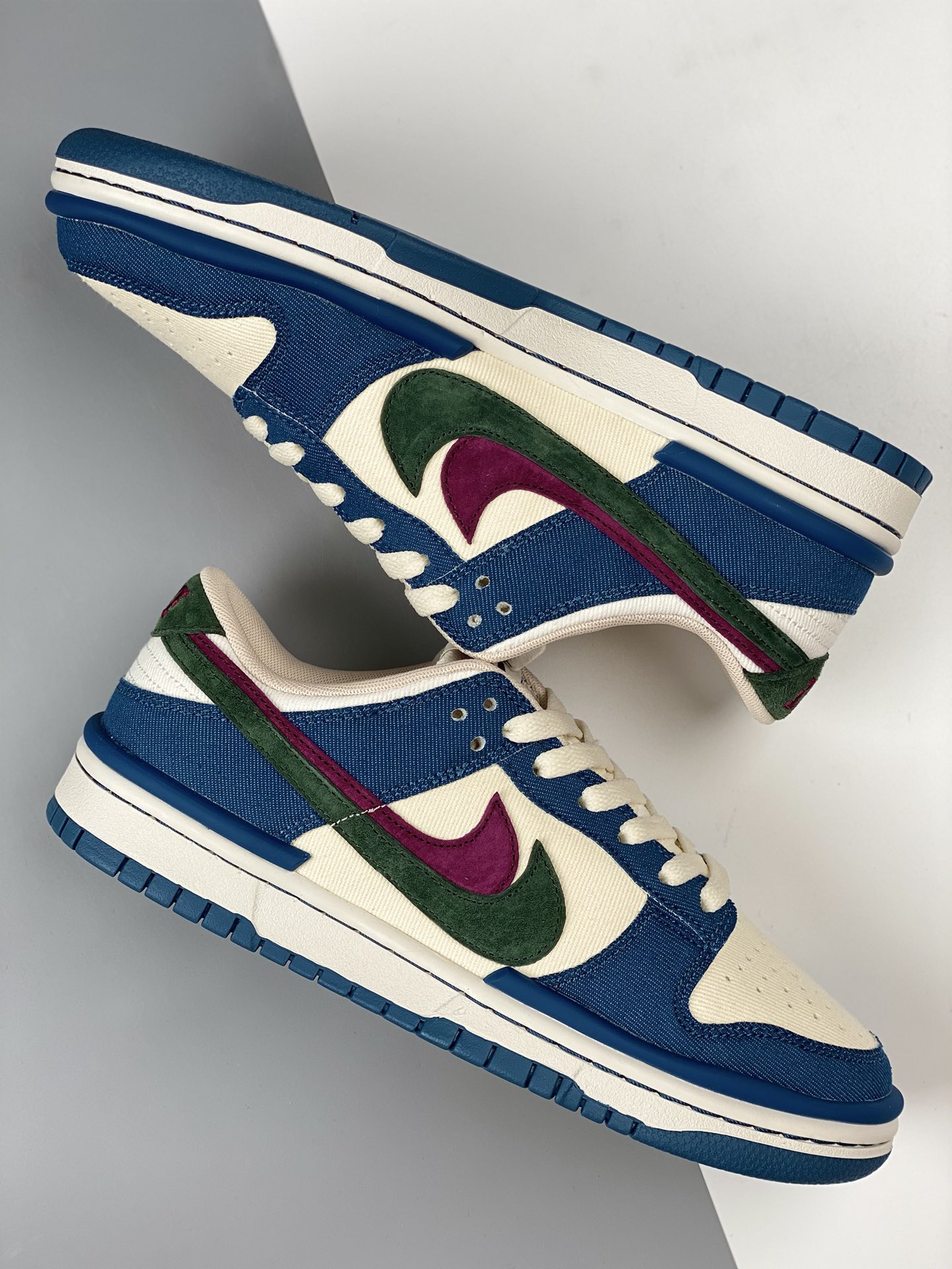 • New Nike dunk low red and green Denim customized double hook flat shoes