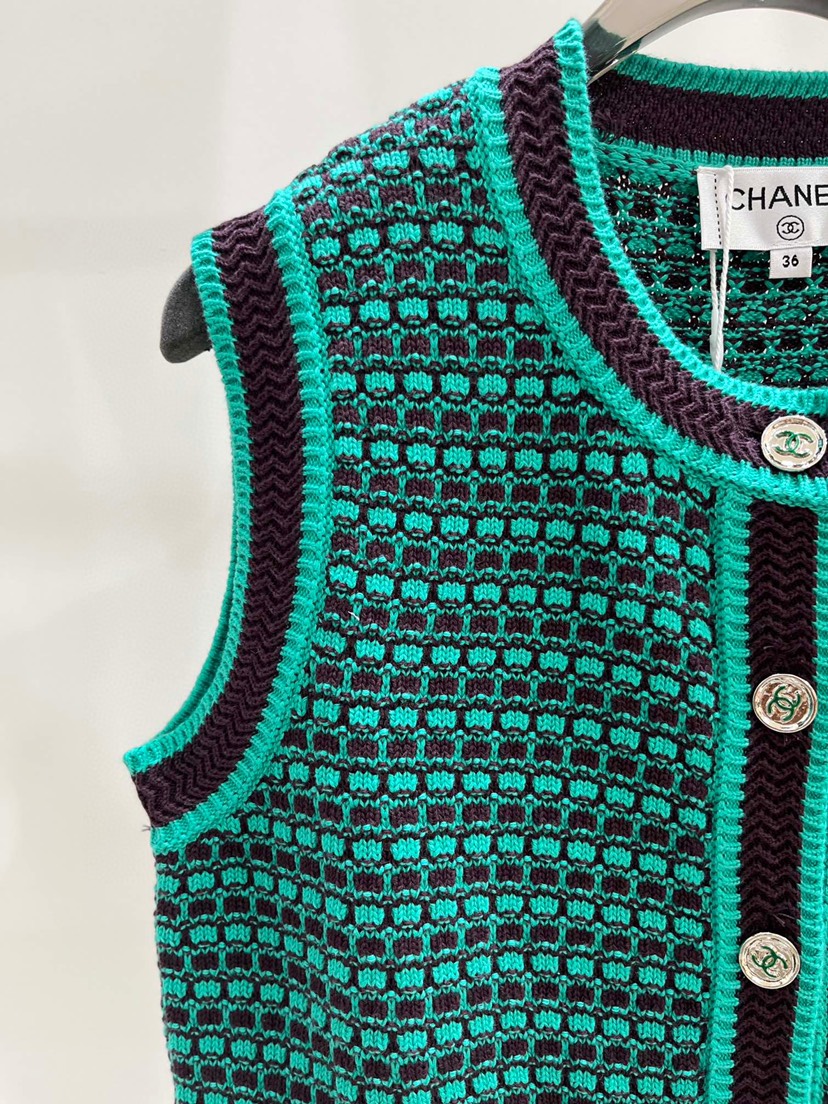 New Chanel New Chanel * 23a Gaoding Handicraft Workshop Series Chicken Heart Neck Knitted Vest