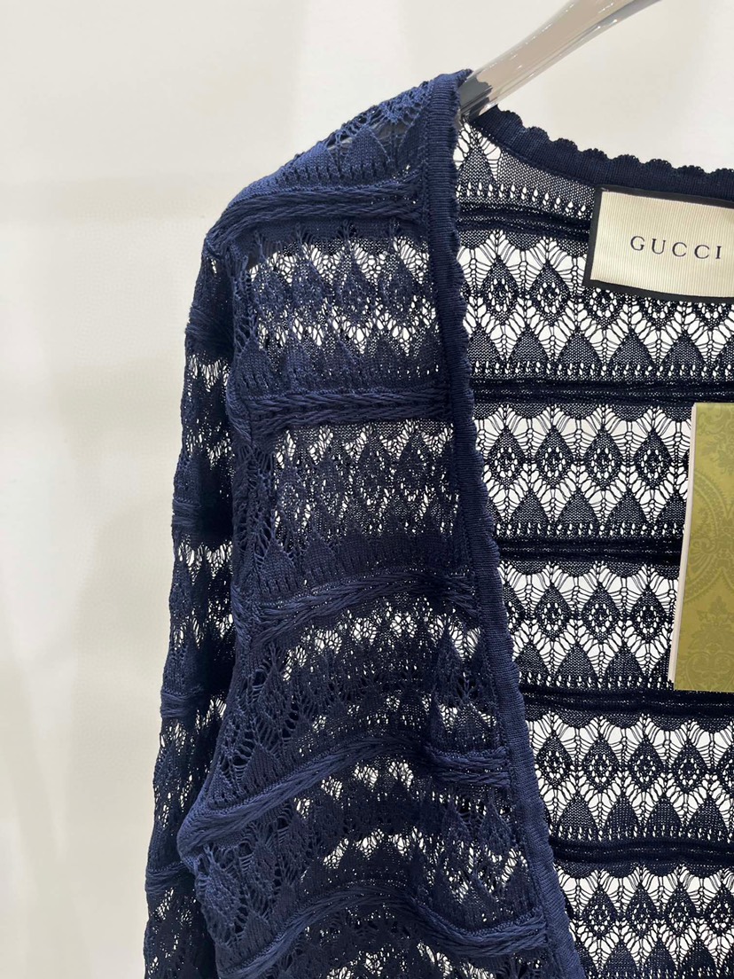 • New ❤️ Gucci Spring/Summer New New Line Hooked Flower Hollow Knitted Cardigan